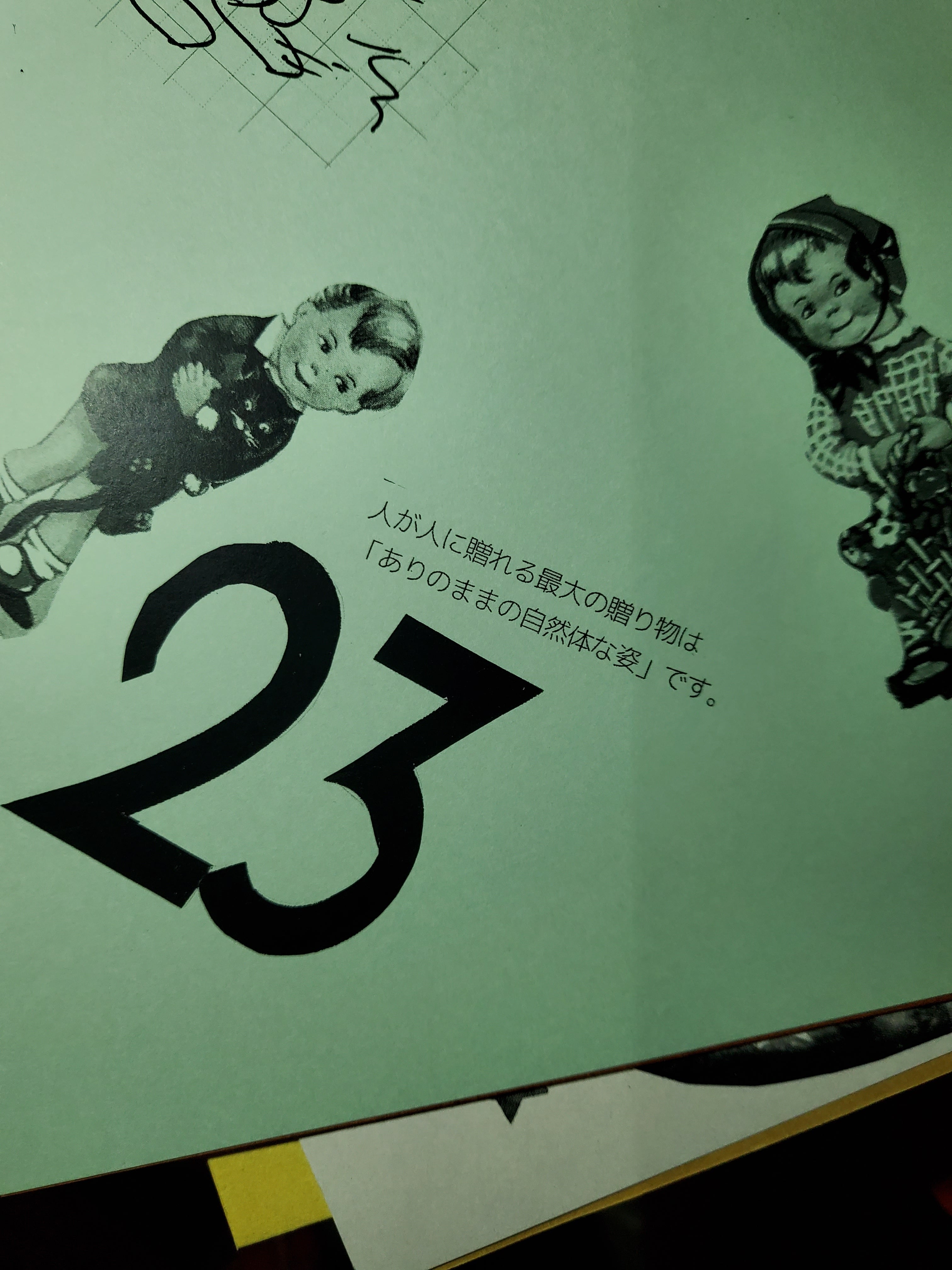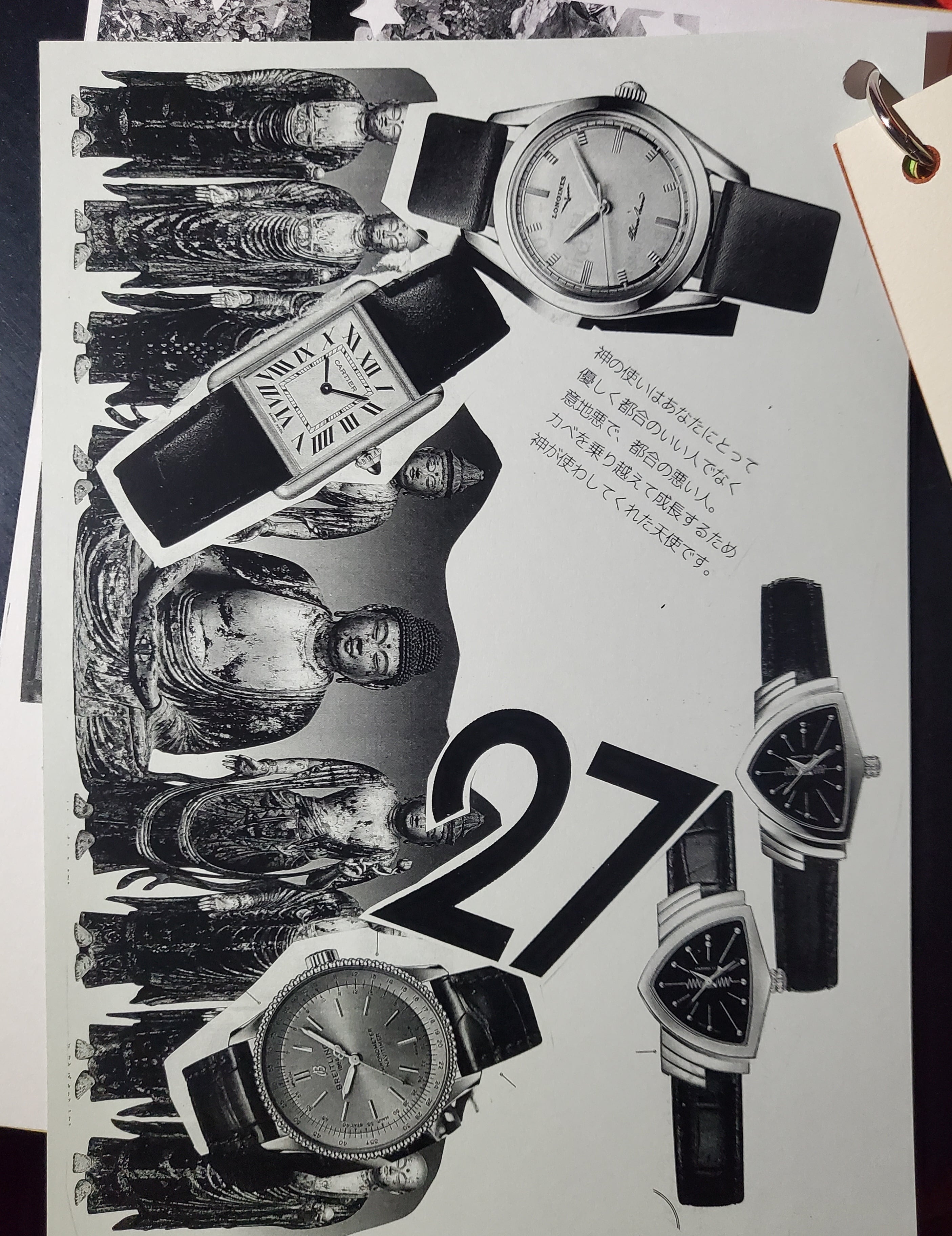 自分で作ったコラージュ作品とともに